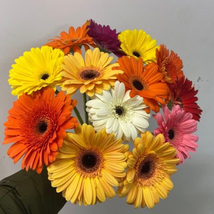 Букет из гортензии, кустовых роз, бовардии, лимониума, гербер и маттиолы в стильной упаковке “Джулия Робертс”