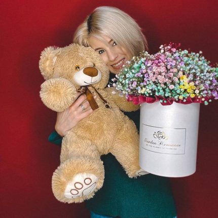 Букет из орхидей, гипсофилы и самшита в плетеной корзине “Зальцбург”