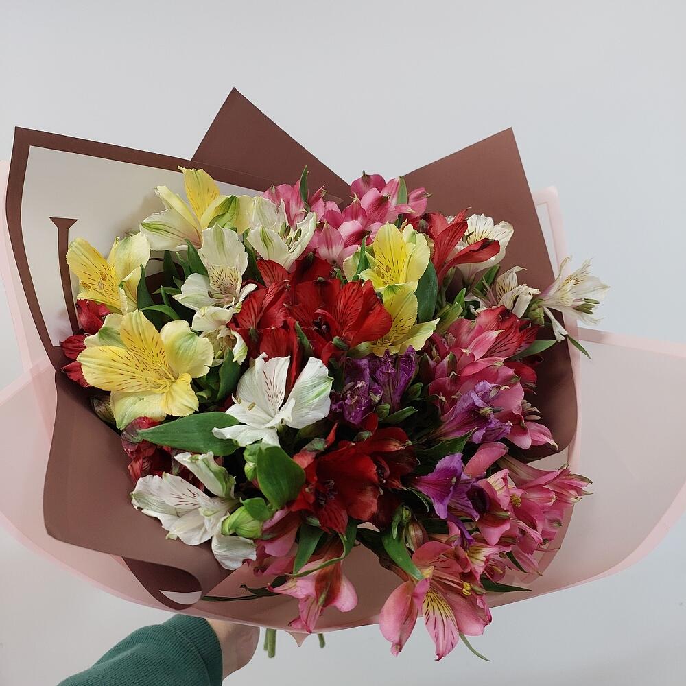 Лента – 1 шт.Упаковка дизайнерская – 2 шт.Альстромерия Микс Европа – 11 шт.
