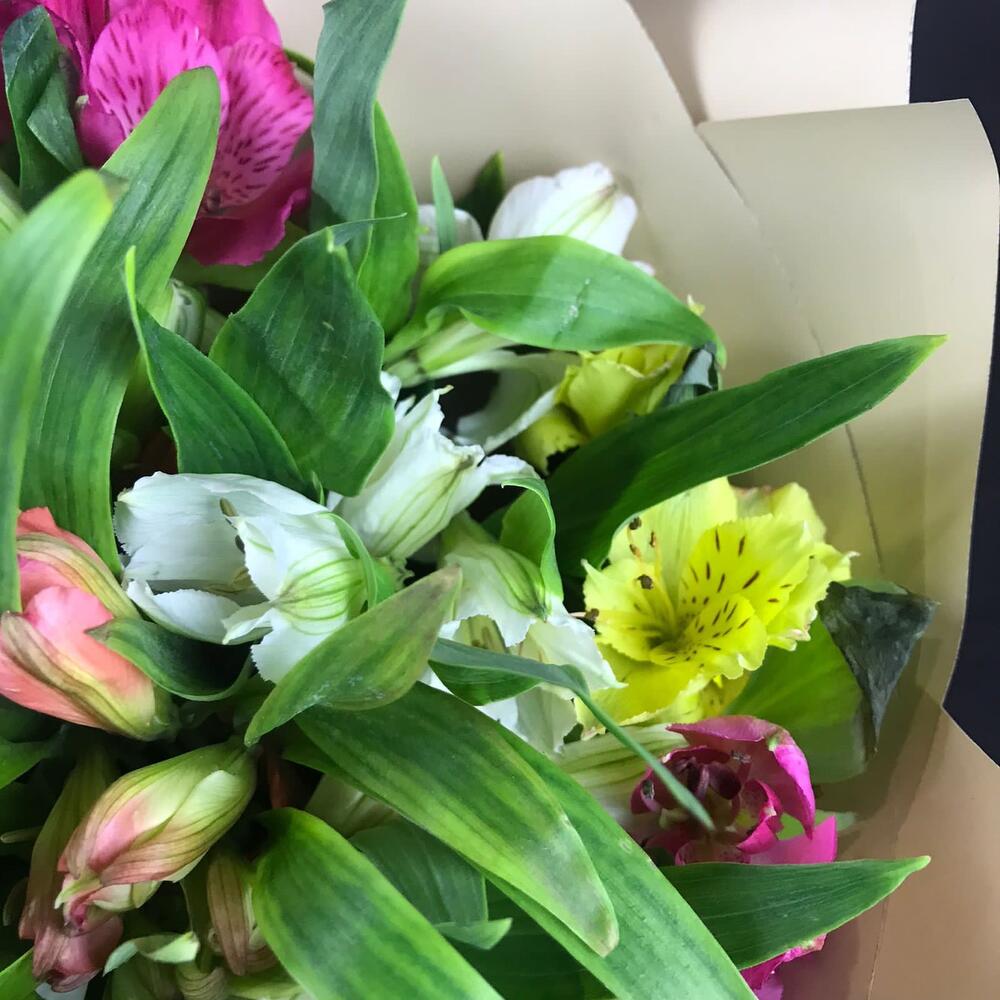 Альстромерия Микс Европа – 25 шт.Упаковка дизайнерская – 1 шт.Лента атласная – 1 шт.