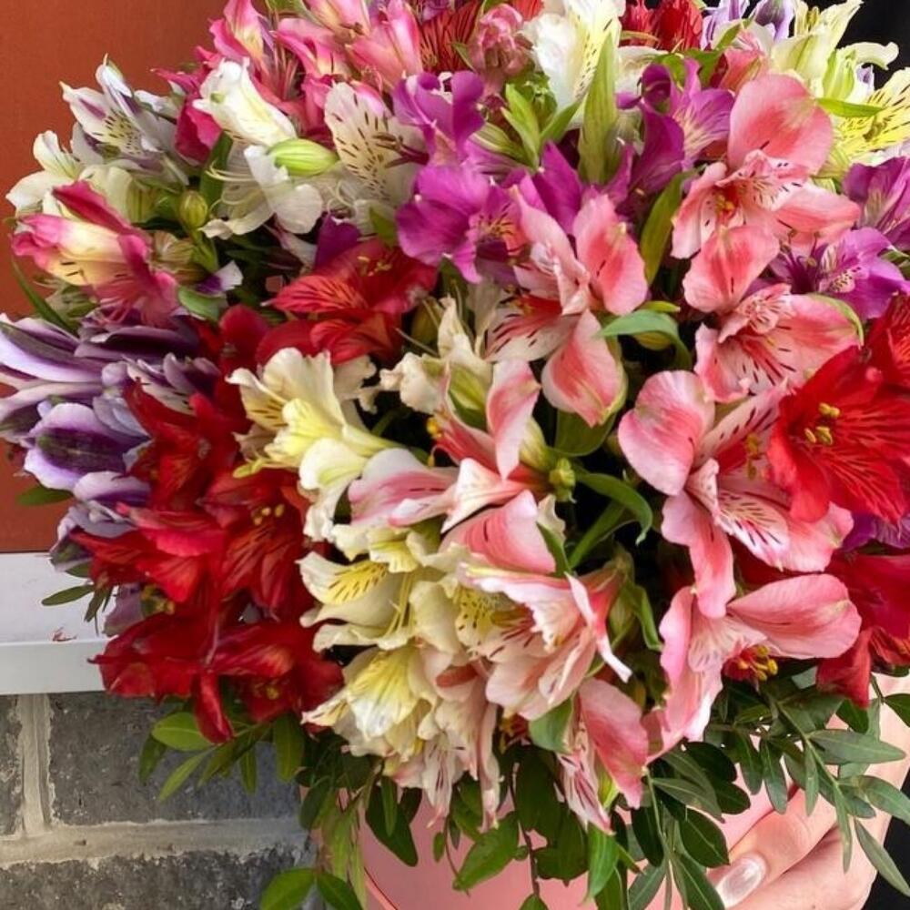 Альстромерия – 25 шт.Оазис флористический – 1 шт.шляпная коробка l – 1 шт.