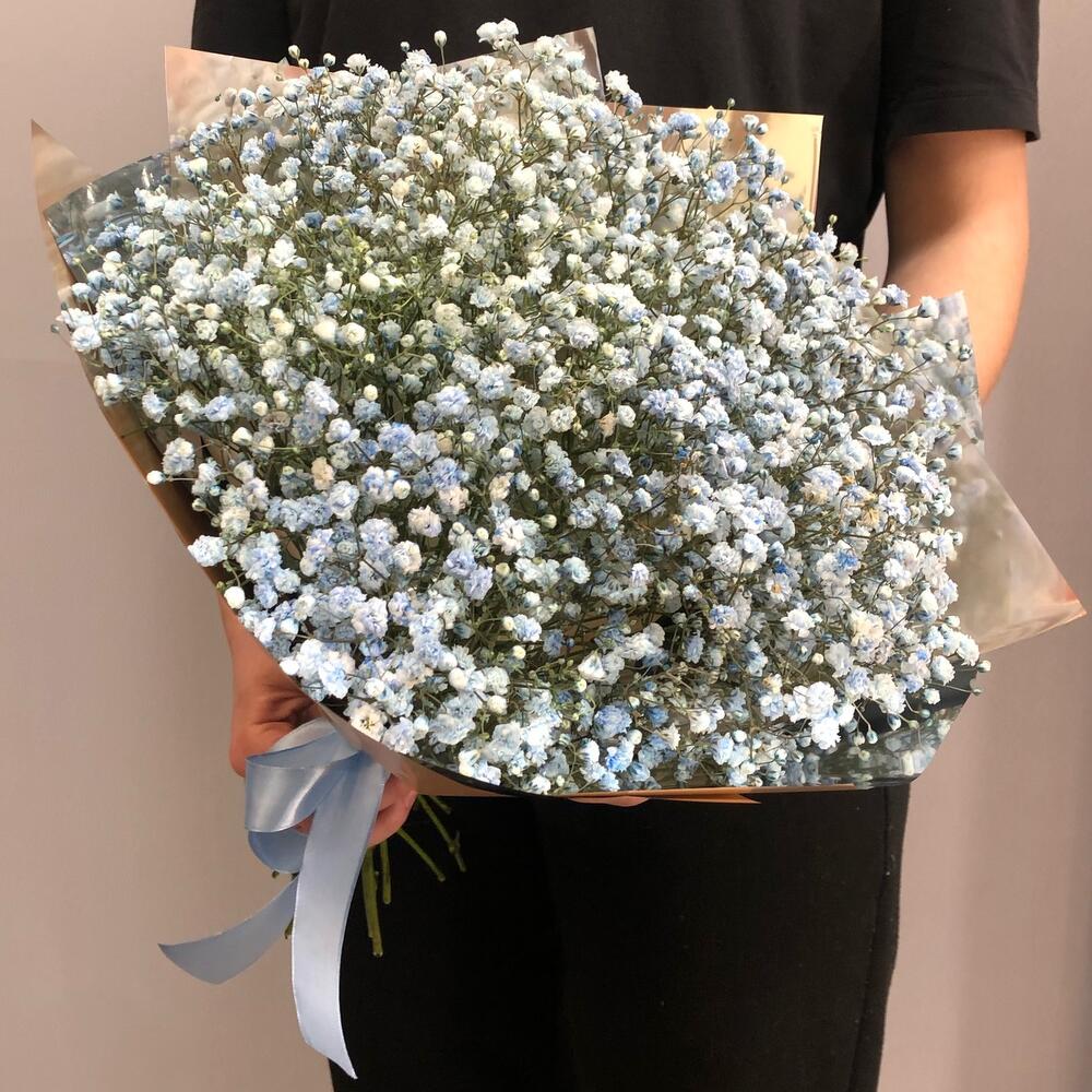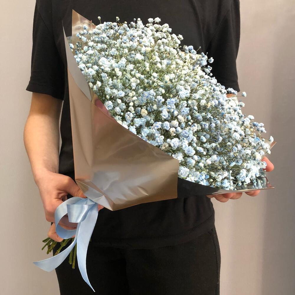 Гипсофила – 9 шт.Упаковка дизайнерская – 1 шт.Лента атласная – 1 шт.