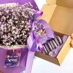 “Сиреневый туман” – композиция из гипсофилы в шляпной коробке