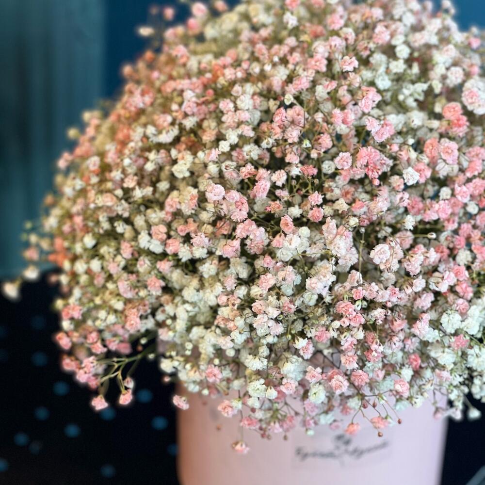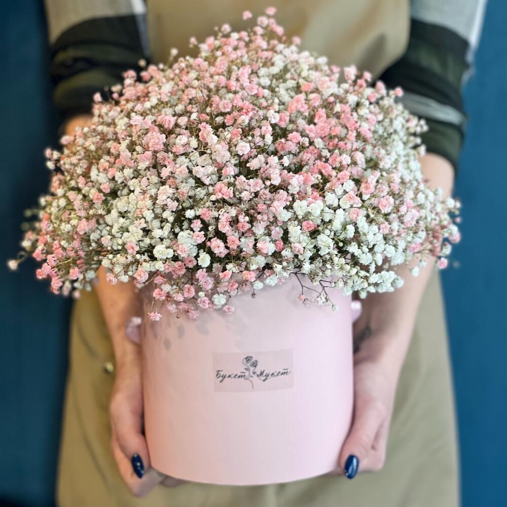 Гипсофила – 7 шт.Коробка шляпная – 1 шт.Оазис флористический – 1 шт.