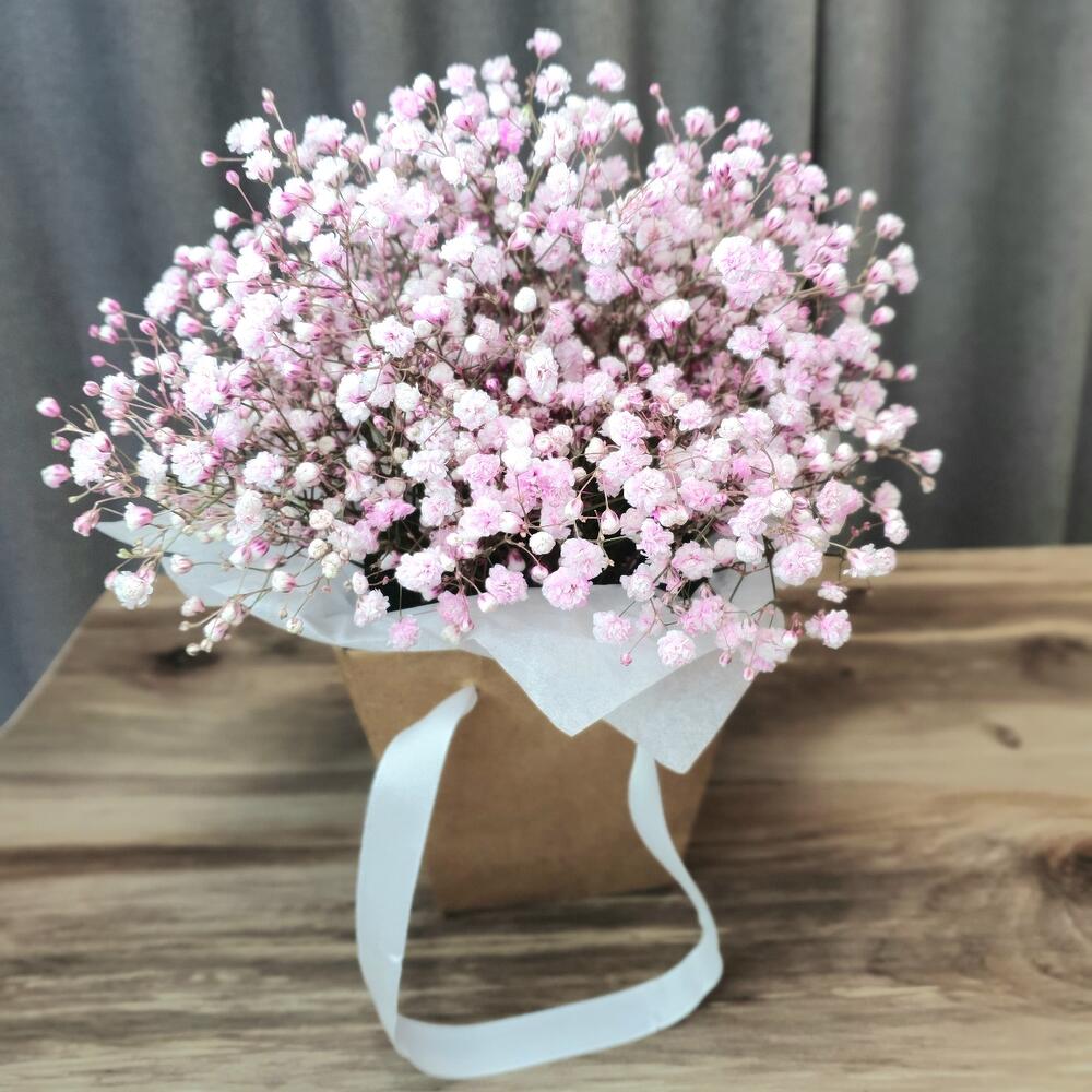 Композиция с розовой гипсофилой "Мальвина"
