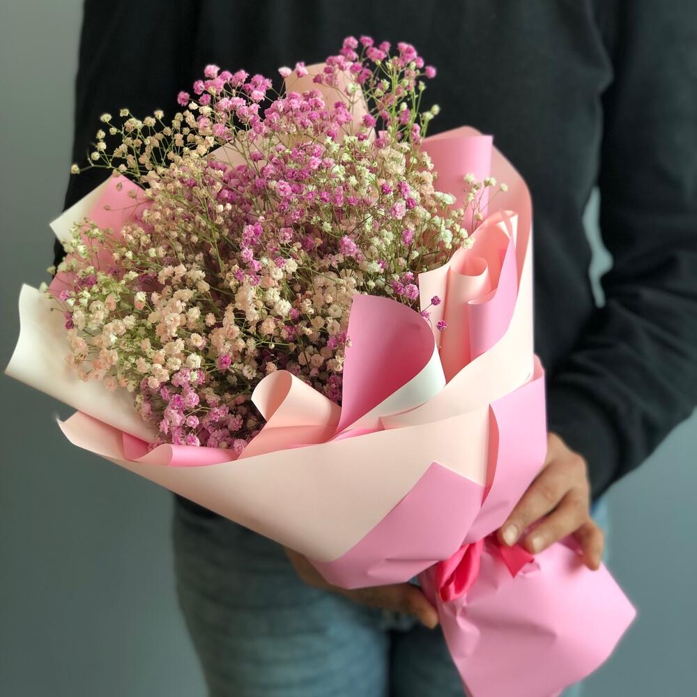 Гипсофила – 5 шт.Упаковка дизайнерская – 2 шт.Лента атласная – 1 шт.