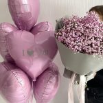 Гипсофила розовая – 13 шт.Сердца фольгированные – 7 шт.