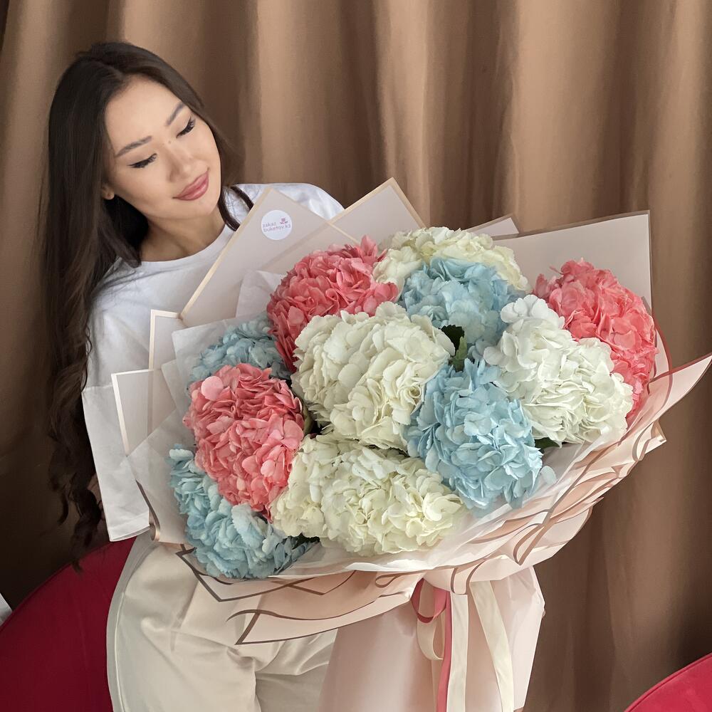 Гвоздики, Гортензии, Кустовые розы, Пионовидные розы, Розы