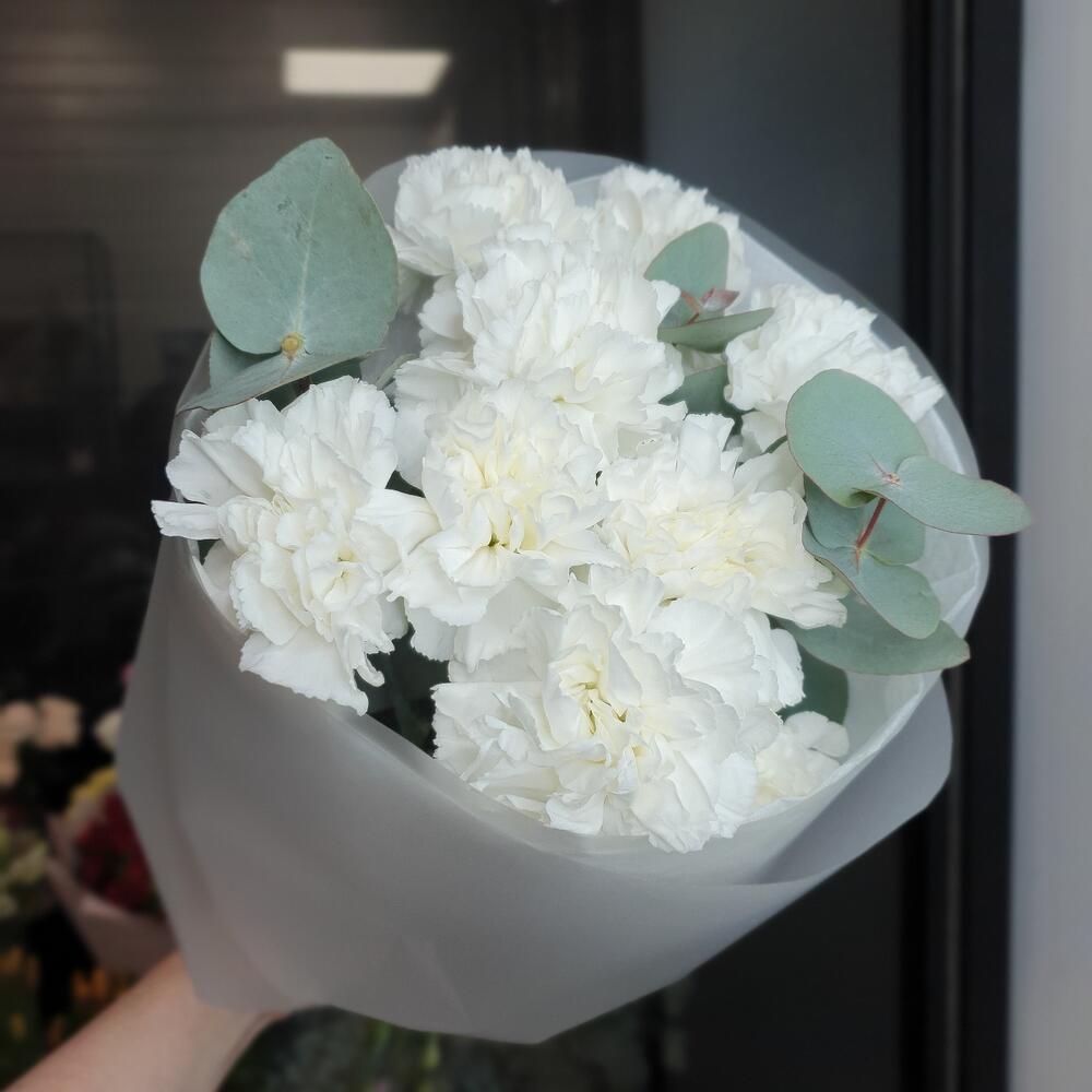 Диантус – 9 шт.Эвкалипт пучок – 1 шт.Упаковка дизайнерская – 2 шт.