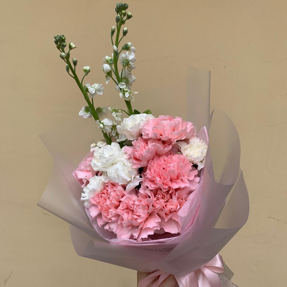 Гвоздика – 13 шт.Маттиола – 2 шт.Дизайнерская упаковка – 1 шт.
