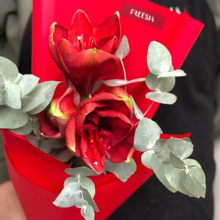 Гвоздика – 3 шт.Альстромерия – 3 шт.Роза кустовая – 1 шт.Ваксфлауэр – 1 шт.Эвкалипт – 2 шт.Упаковка дизайнерская – 2 шт.