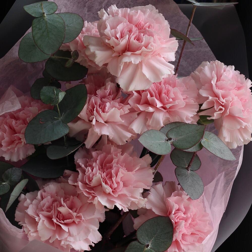 Эвкалипт – 3 шт.Диантус – 9 шт.Упаковка дизайнерская – 1 шт.