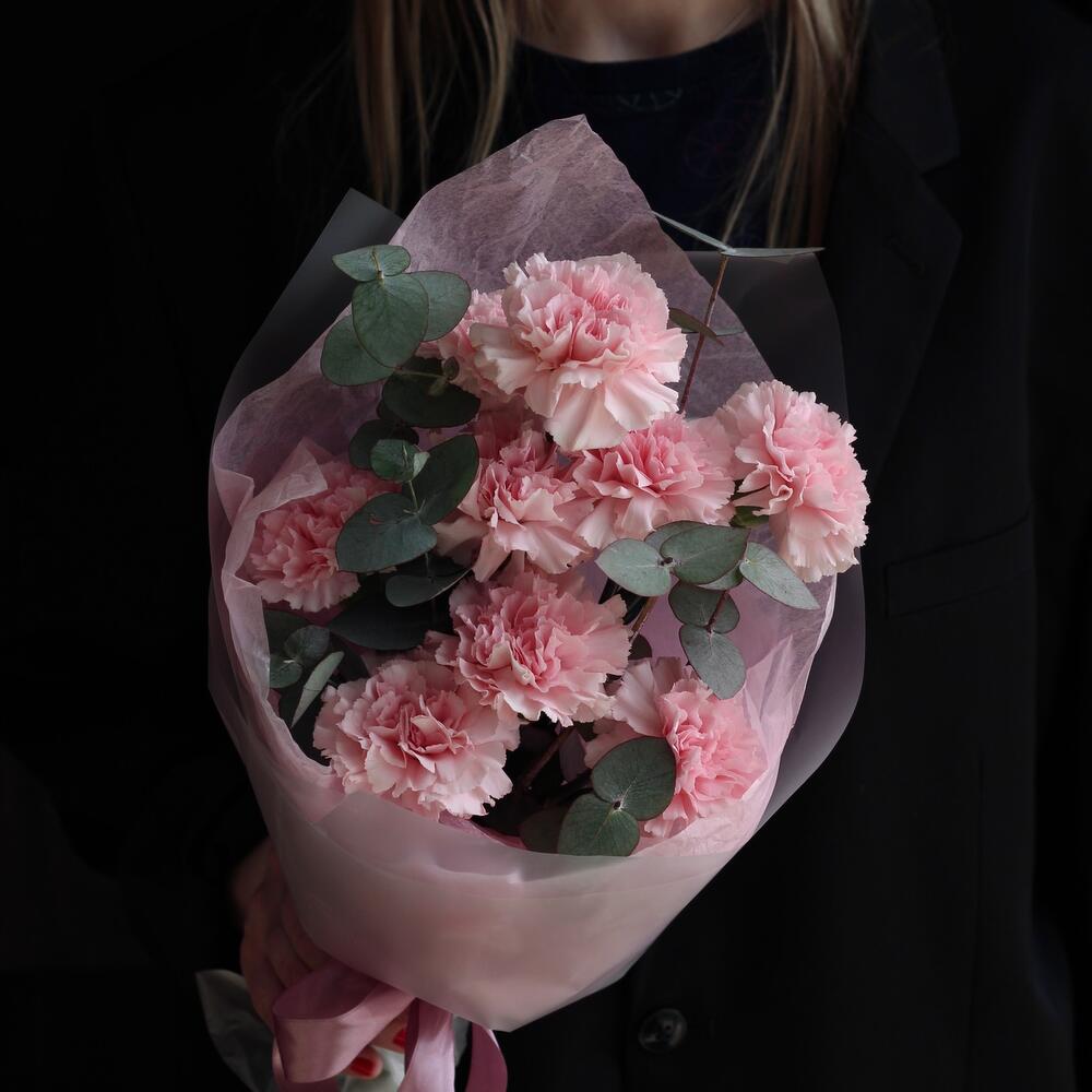 МОНО из розовых диантусов и эвкалипта