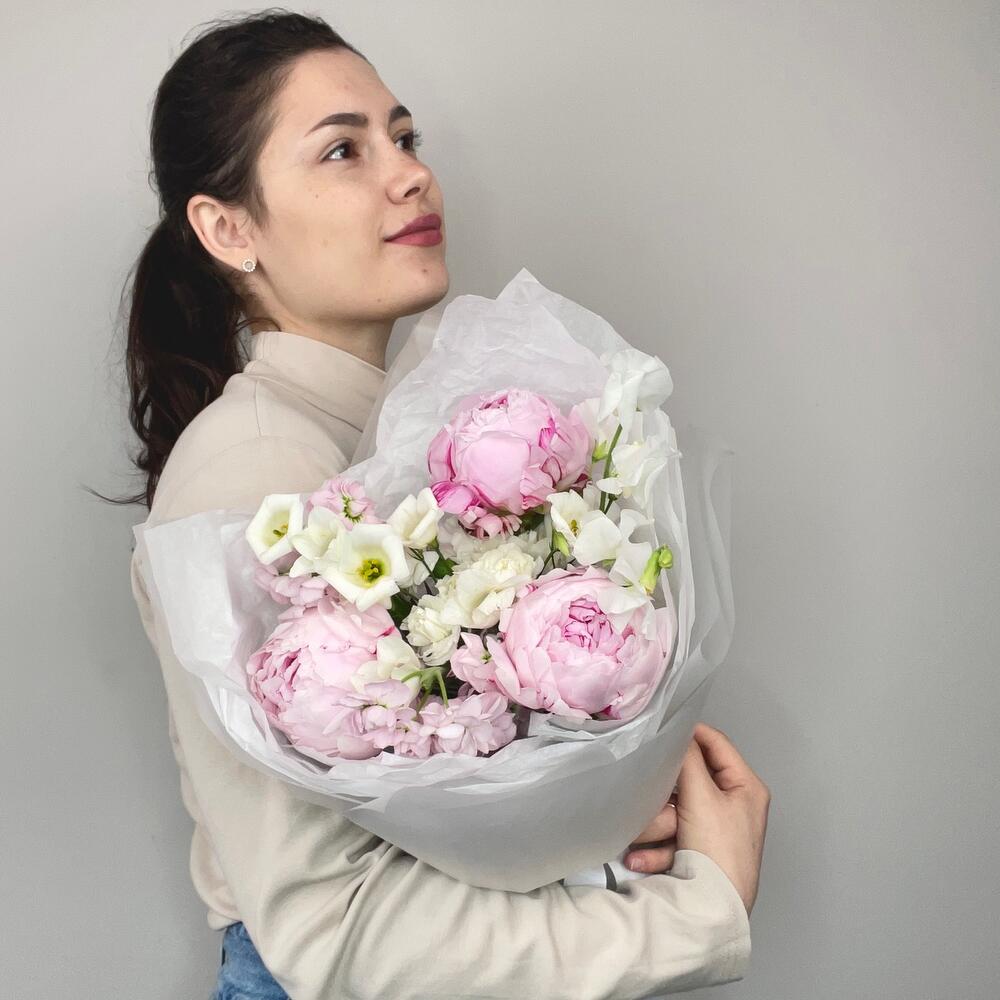Нежный букет с изящными пионами сорта Сара Бенрнард, ароматными латирусом и маттиолойМы используем для создания наших букетиков только качественный и свежий цветокСоздаем букеты с невероятной любовьюК букетику мы всегда прилагаем подкормку для цветочков – «chrysal”, чтобы они дольше сохраняли свою свежесть и красоту а также «Советы флористов» по уходу за срезанными цветочками Дополнительно к букетику Вы можете приобрести аквабоксы, транспортировочные коробки, крафтовые пакеты и вазы нужного размера
