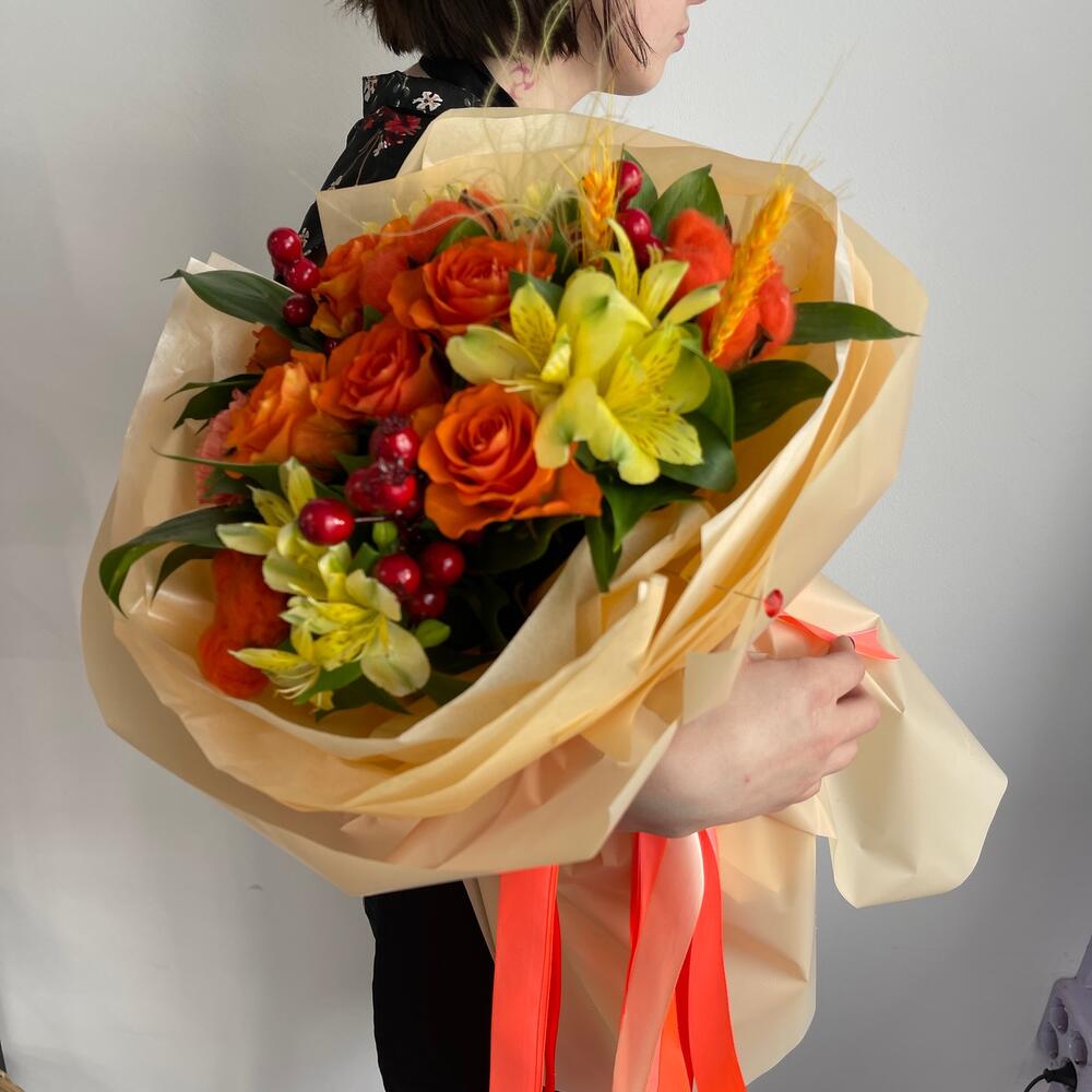 Категории: АльстромерииРозы, Гвоздики, Сухоцвет