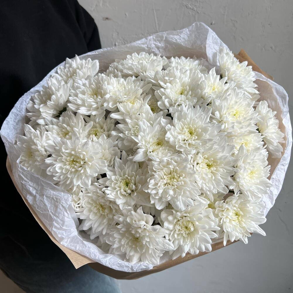 Хризантема кустовая – 9 шт.Лента атласная – 2 шт.Упаковка дизайнерская – 3 шт.