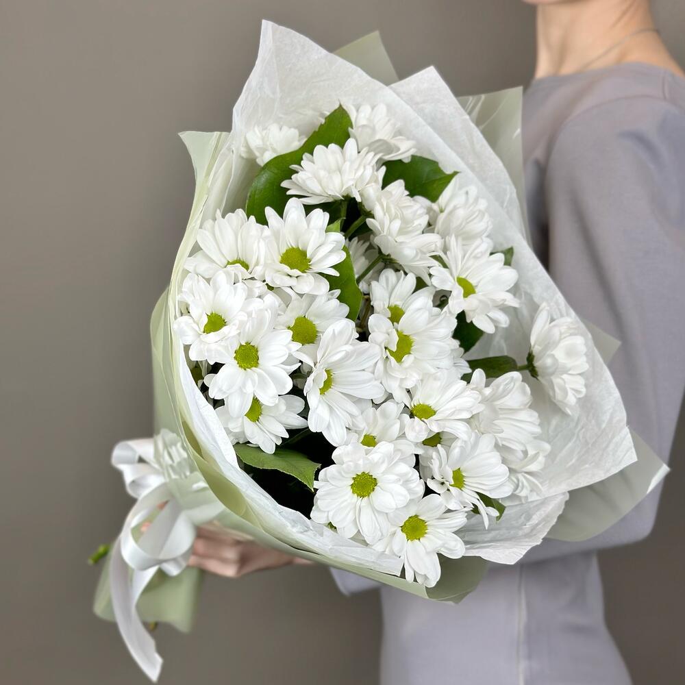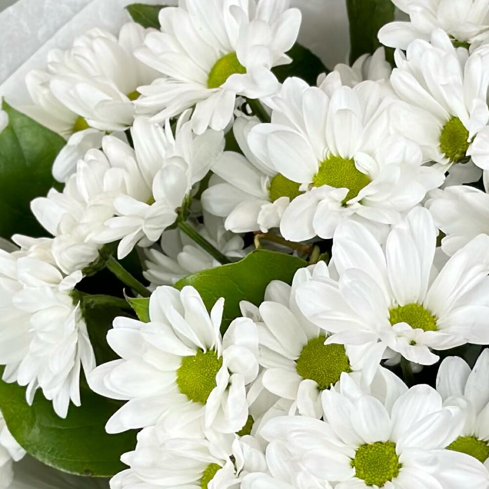 Букет хризантем (ромашковидных) с салалом, 5 шт