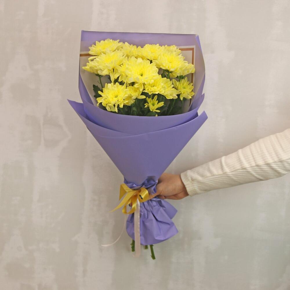 Букет из 3 желтых кустовых хризантем в стильной упаковке