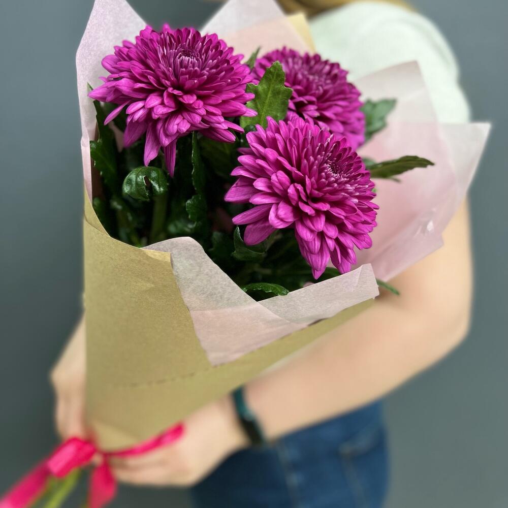 Хризантема одноголовая – 3 шт.Крафт упаковка – 1 шт.