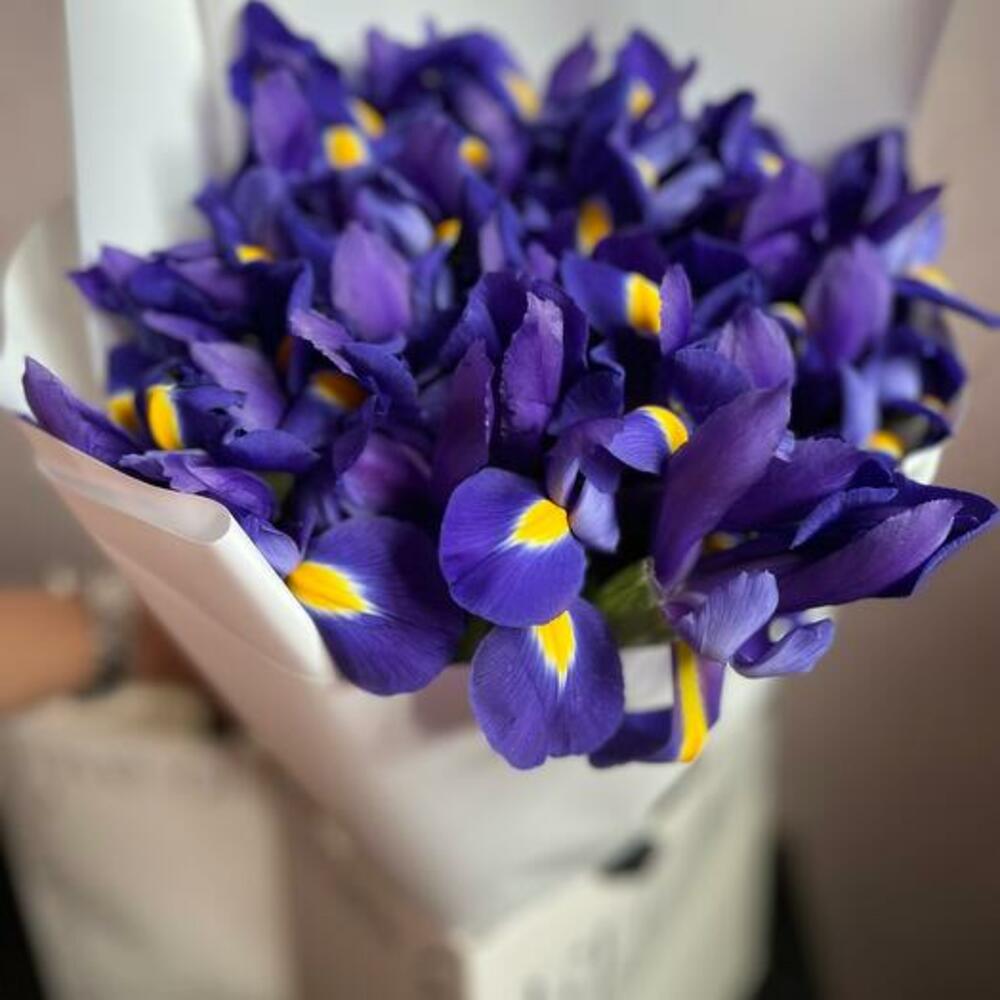 ирисы – 15 шт.декоративная упаковка – 1 шт.Атласная лента – 1 шт.