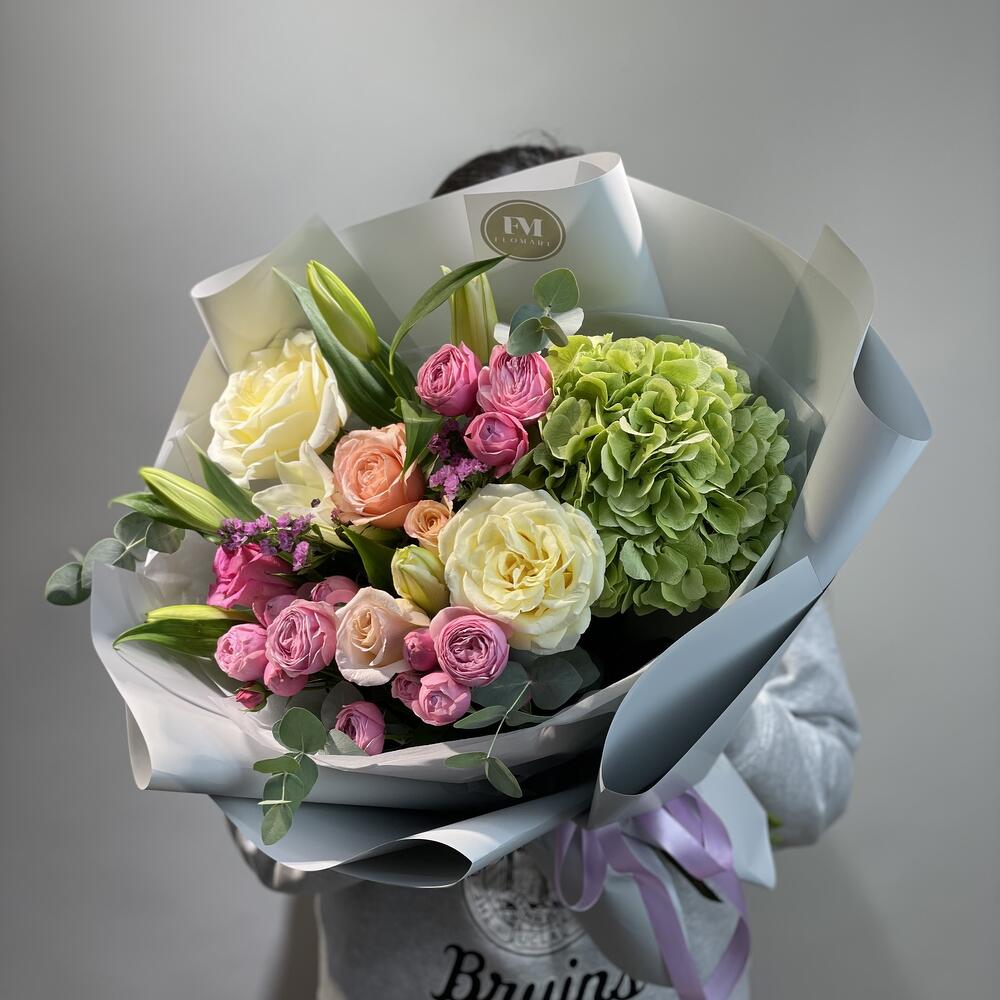 Гортензии, Кустовые розы, Лизиантусы, Пионовидные розы, Розы