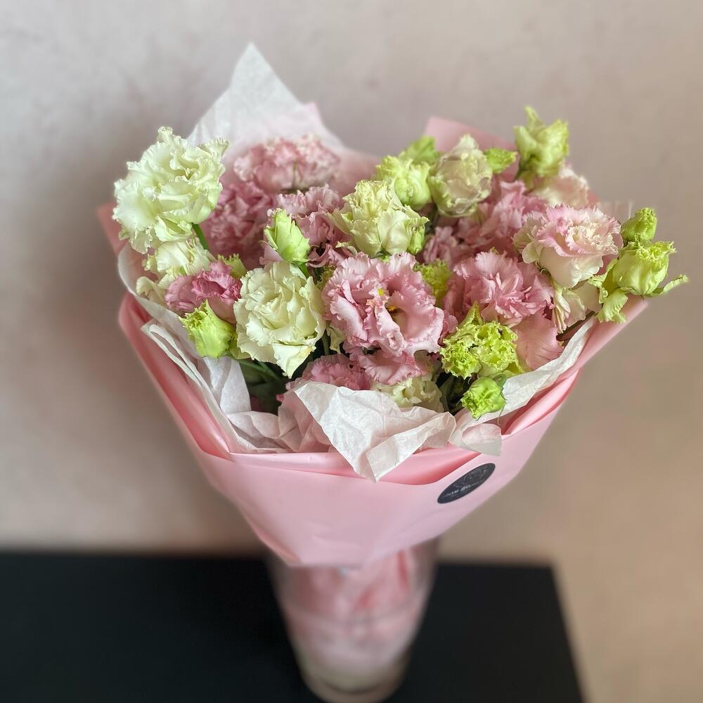 эустома розовая – 7 шт.декоративная упаковка – 1 шт.Атласная лента – 1 шт.