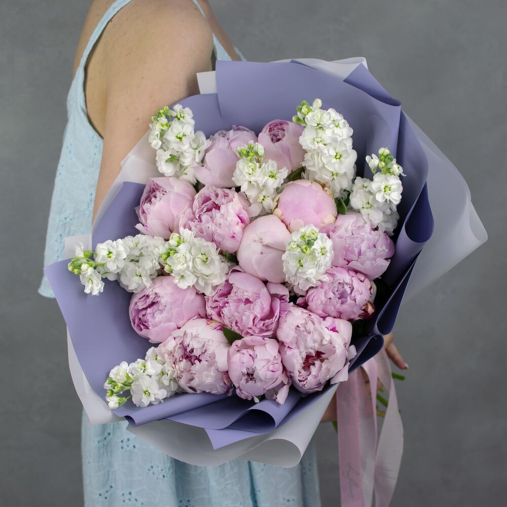 Пион Сара Бернар – 13 шт.Маттиола белая – 8 шт.