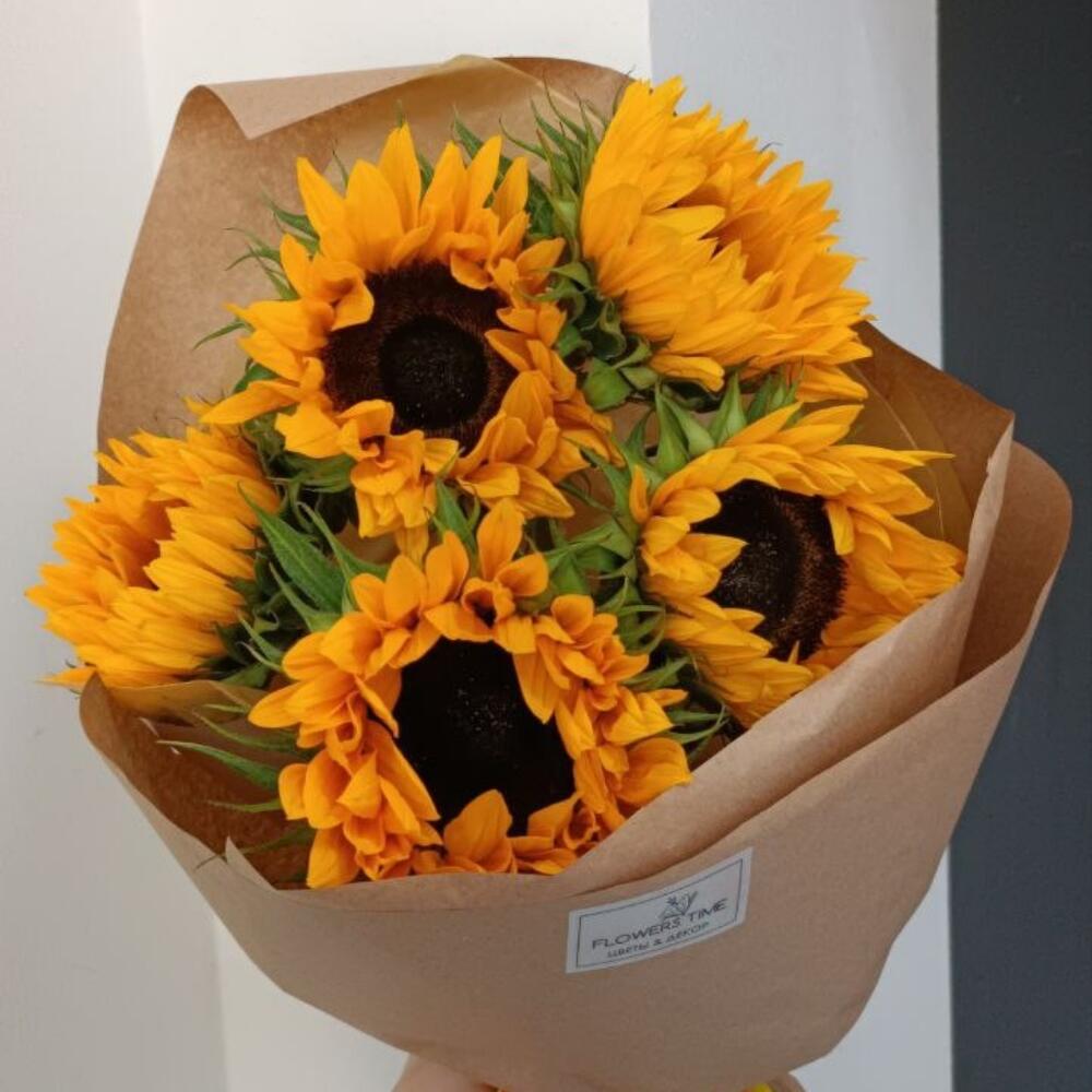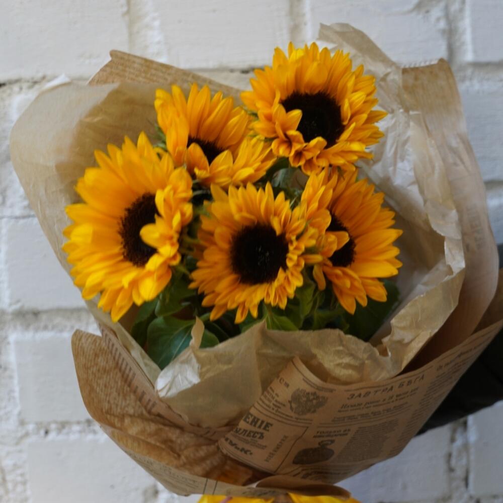 АНАСТАСИЯ солнечный букет из подсолнухов и ромашек