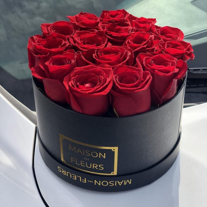 Роза красная Эквадор – 15 шт. Коробка черная – 1 шт.