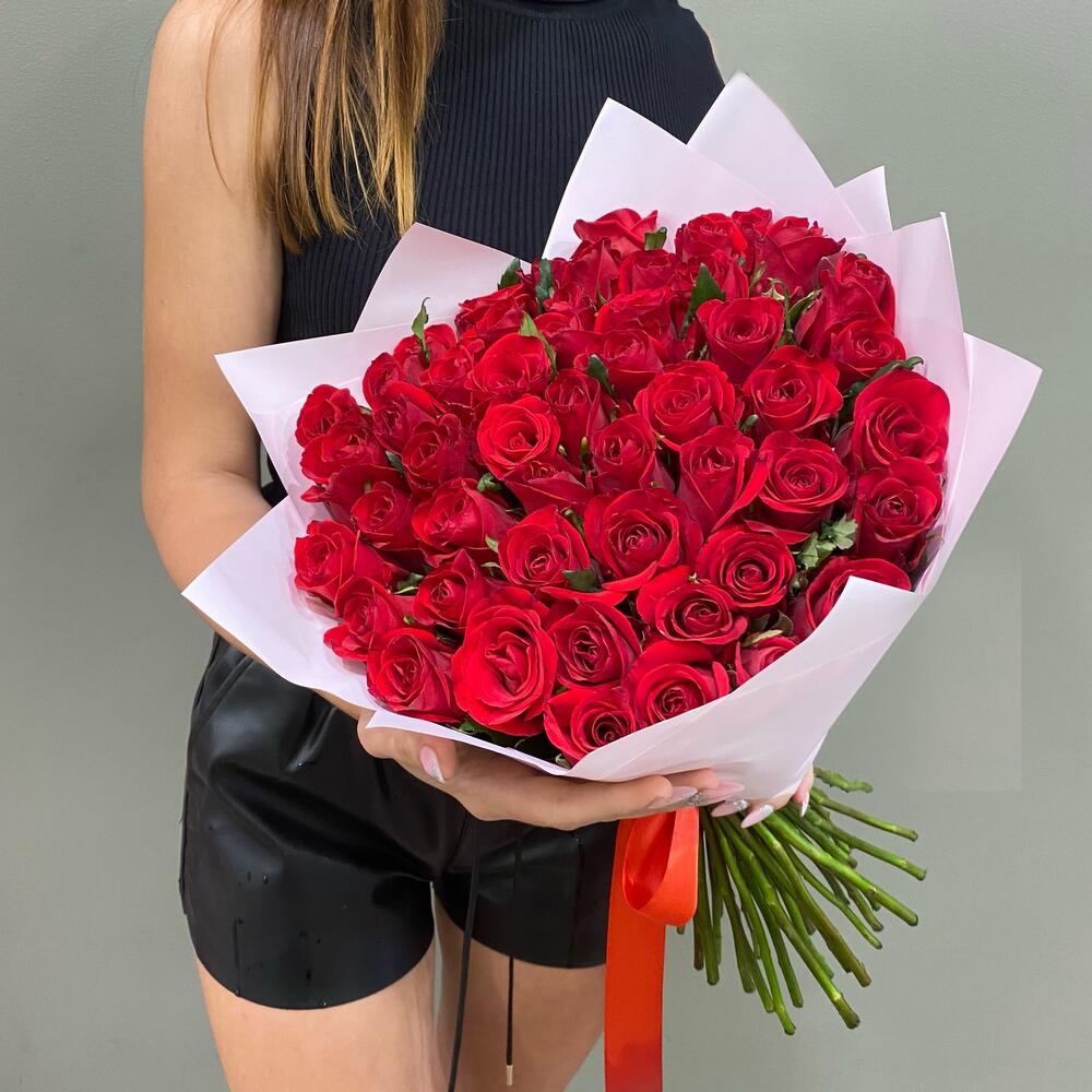51 красная роза 60 см в букете