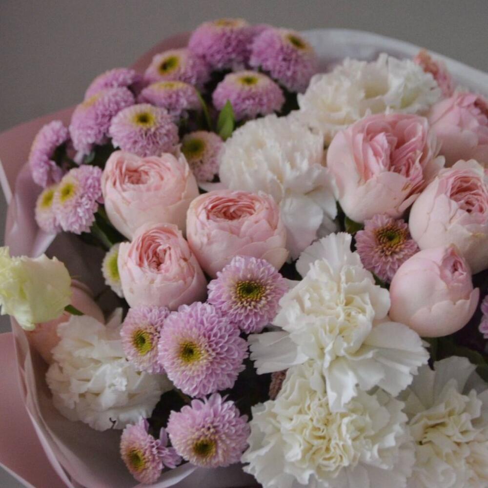 Гвоздики, Кустовые розы, Лизиантусы, Пионовидные розы, Розы