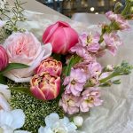 роза пинк охара(ароматная) – 3 шт.Пион Коралл Шарм (Coral Charm) – 1 шт.пионовидный тюльпан коламбус – 3 шт.Маттиола – 2 шт.Трахелиум – 1 шт.Диантус кустовой – 2 шт.Хамелациум белый – 1 шт.Упаковка дизайнерская – 3 шт.Лента атласная – 1 шт.