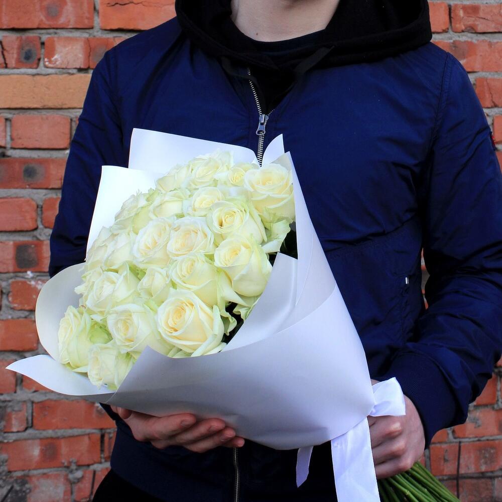 Букет из 25 белых роз 35-40 см (Кения) под ленту