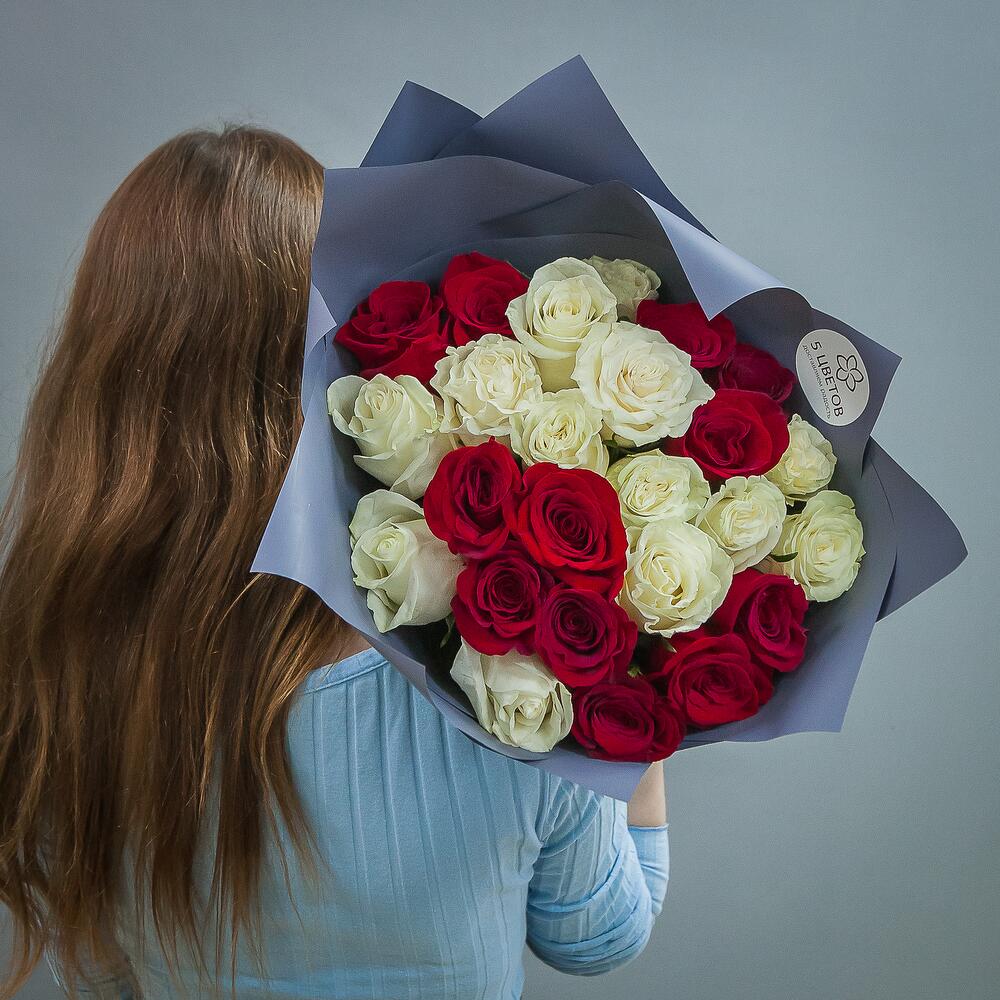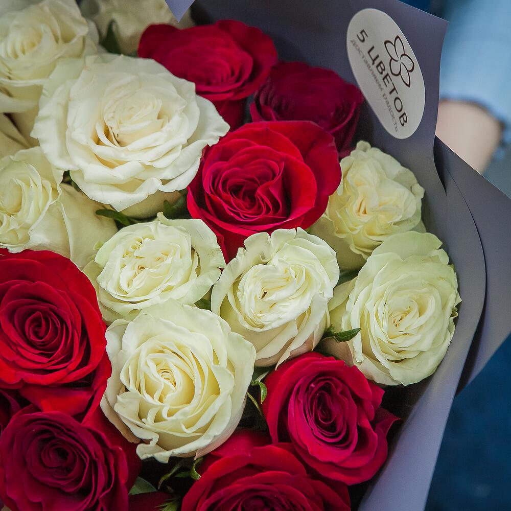 Букет из 25 красных и белых роз