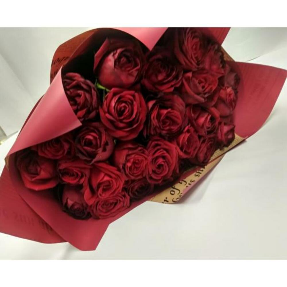 Букет из 25 красных роз в упаковке