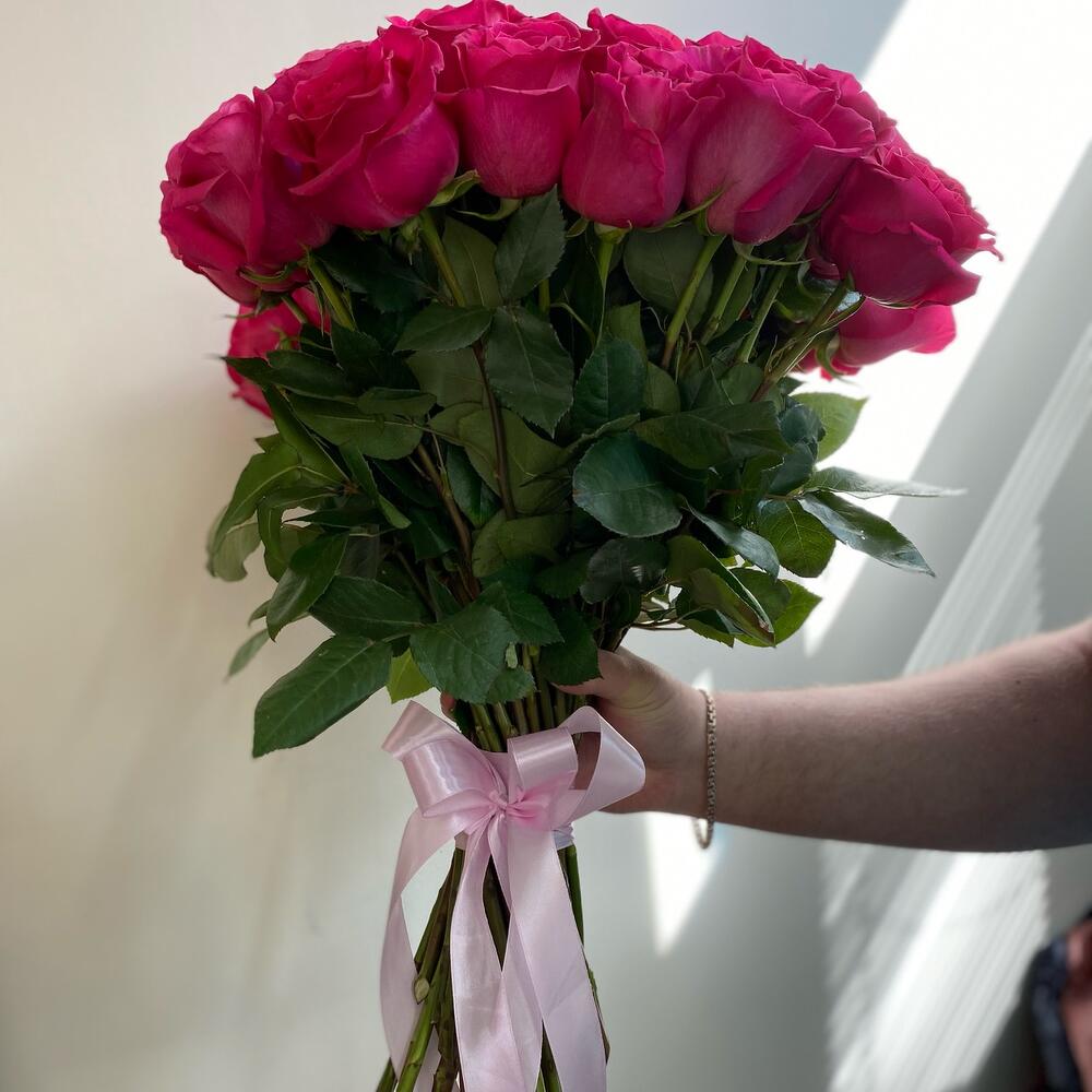 Роза Эквадор 60 см – 51 шт.Лента атласная – 5 шт.