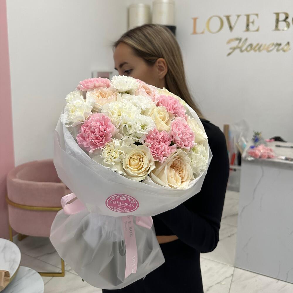 Категории: Гвоздики, Лизиантусы, Пионовидные розы, Розы