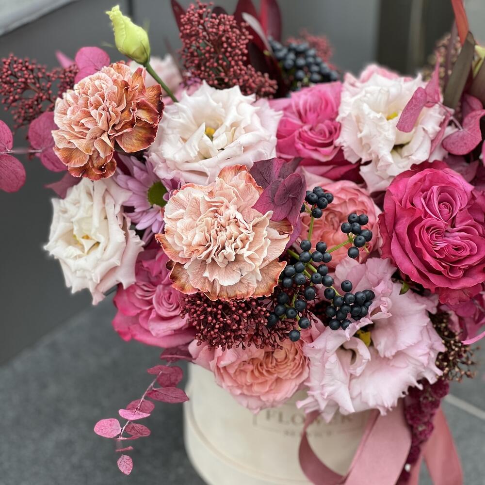 Альстромерии, Гортензии, Кустовые розы, Лизиантусы, Розы, Хризантемы