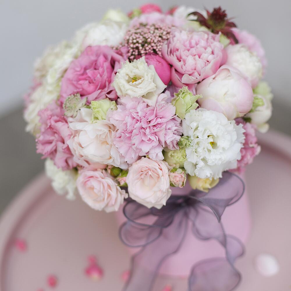 Гвоздики, Кустовые розы, Лизиантусы, Пионовидные розы, Розы
