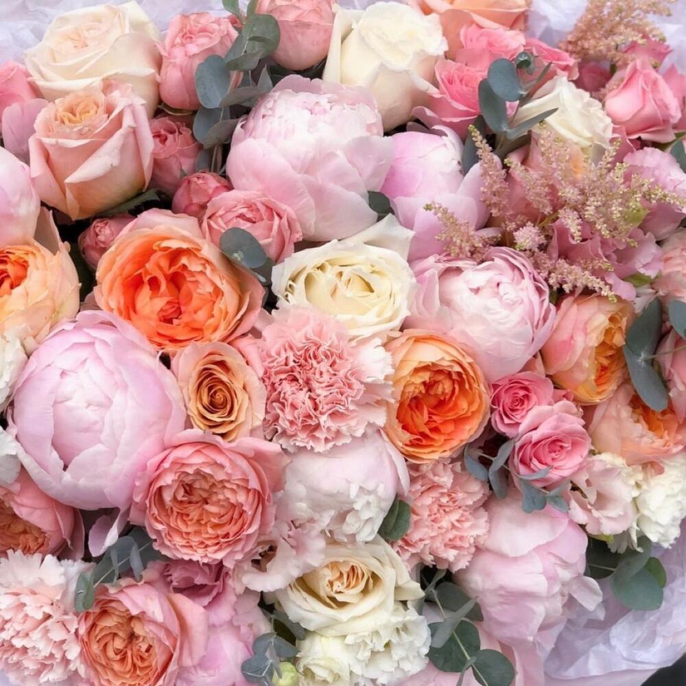 Гвоздики, Кустовые розы, Пионовидные розы, Розы