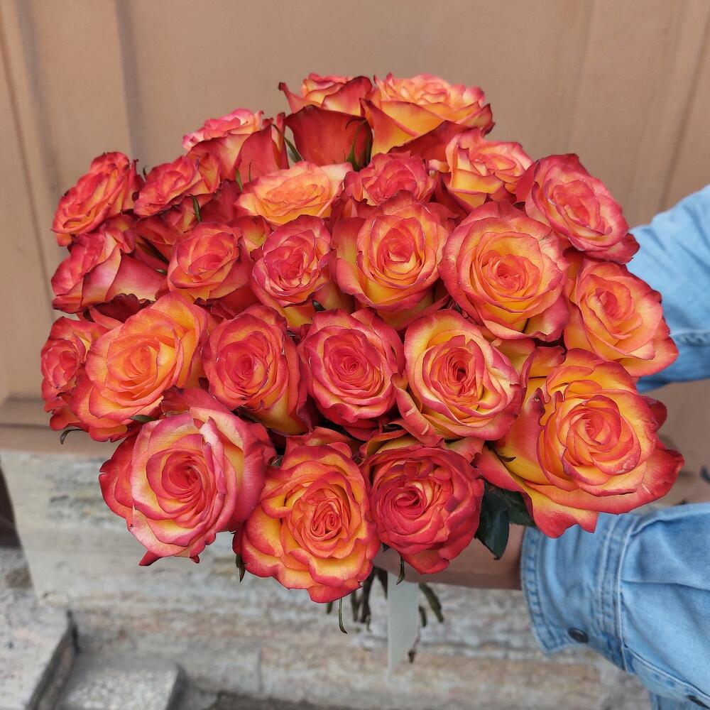 Эти красотки огненного цвета не оставят ни одного равнодушного сердца. Яркий, стойкий букет из 25 роз с тонким ароматом осени. Он покорит сердце Вашей красотки на всегда. Эквадорская роза стоит в домашних условиях до 4-х недель. Покорите своего родного человека этой красотой