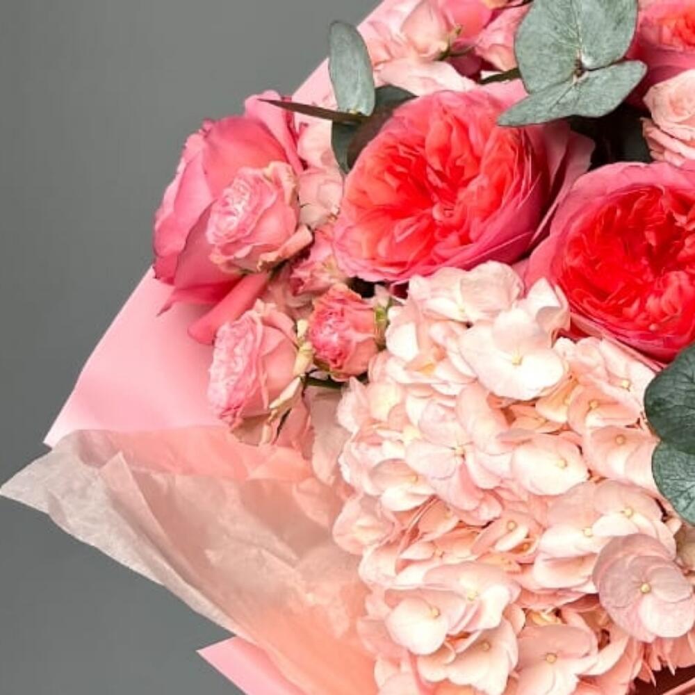 Гвоздики, Пионовидные розы, Розы