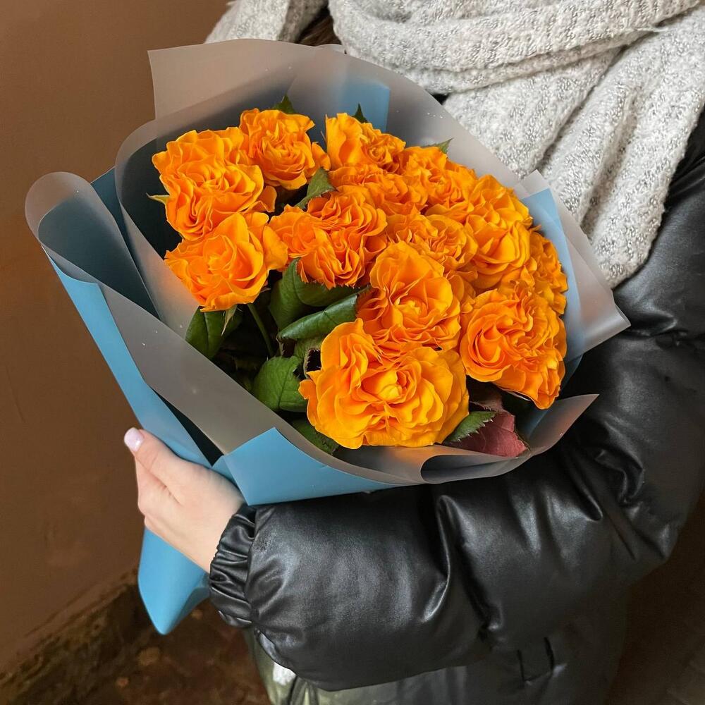 Авторская упаковка – 1 шт.роза оранжевая россия – 13 шт.