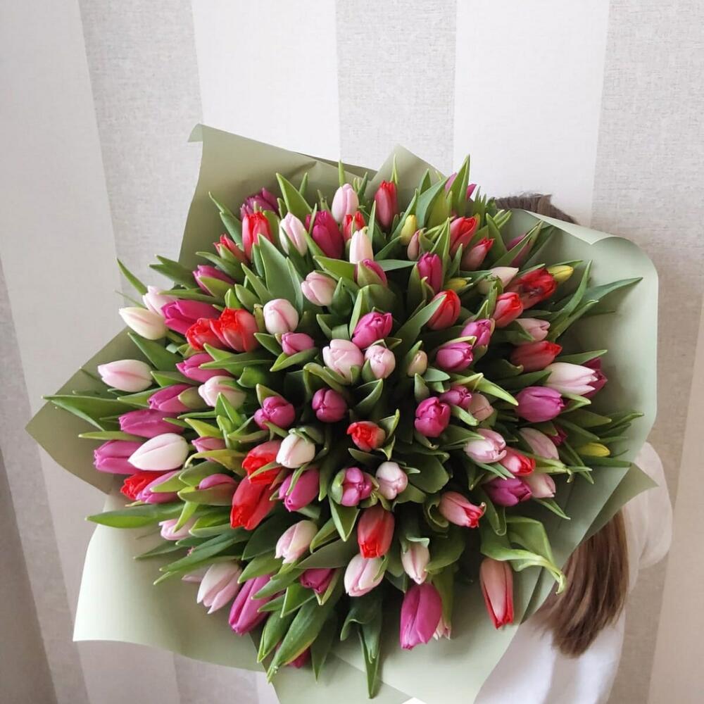 Тюльпан микс – 101 шт.Упаковка – 1 шт.Лента атласная – 1 шт.